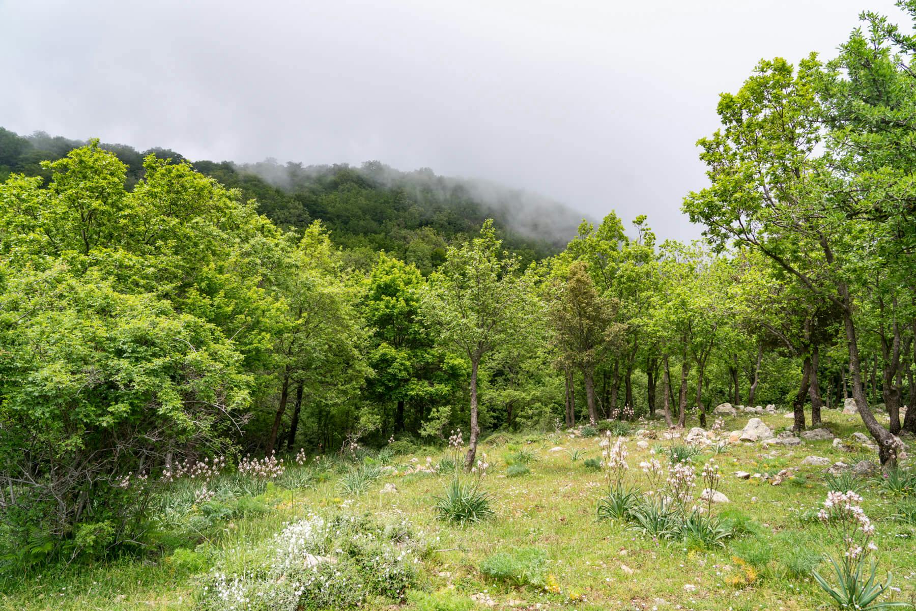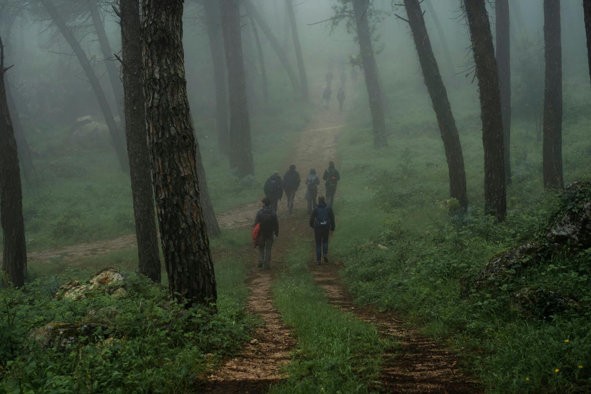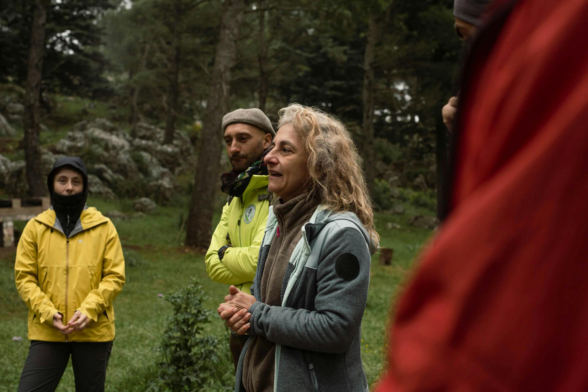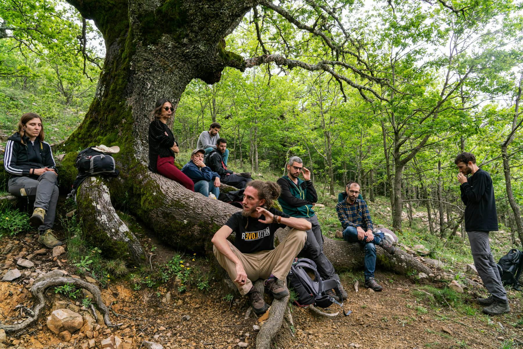 Ci siamo ritrovati con Hanna Rasper e Enrico Guzzo del collettivo Rewild Sicily e con Antonino Daidone e Francesco Antibo, volontari del servizio civile, al piccolo caseificio di Rossella Calascibetta ad Altofonte. La struttura è stata fortemente danneggiata dagli scioccanti incendi che hanno segnato la memoria collettiva nel 2020, così come le pratiche di pascolo rigenerativo, che Rossella porta avanti da anni sul territorio. Proseguendo verso la cima del bosco della Moarda, nonostante la fitta nebbia, è stato possibile vedere le tracce dei violenti incendi passati: alberi bruciati, terreno carbonizzato e la fauna scomparsa. Il protagonista dell’escursione non è stato il fuoco, bensì il tema della “resistenza”. Durante questa uscita abbiamo infatti discusso degli strumenti virtuosi che le comunità locali possono mettere in campo per la lotta antincendio: l’agroforestazione, il pascolo rigenerativo e il “rewilding”, ovvero la rigenerazione dei processi naturali.